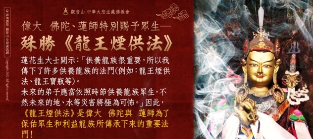 為什麼要修持龍王煙供?龍族曾向佛陀及 蓮花生大士誓願守護佛教、利益有情。若能修持增益、利益龍族的法門,則可消除…