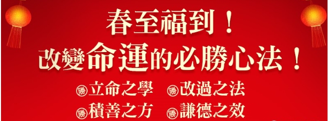 從了凡四訓學習改變命運,袁了凡先生苦心訓誡兒子所寫下的四篇短文「立命之學」、「改過之法」、「積善之方」、「謙德之效」,已成為了廣行於世、人人皆知可以改變命運的寶典──《了凡四訓》。